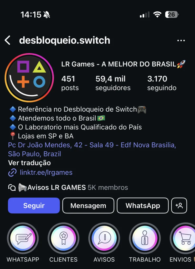 Em 2024, demos mais um grande passo ao firmar uma parceria com a renomada LR GAMES, referência no mercado de desbloqueios e manutenção de consoles. Agora, além do Nintendo Switch tradicional, também oferecemos Nintendo Switch desbloqueados com total segurança e suporte, garantindo mais possibilidades para nossos clientes aproveitarem seus jogos favoritos.